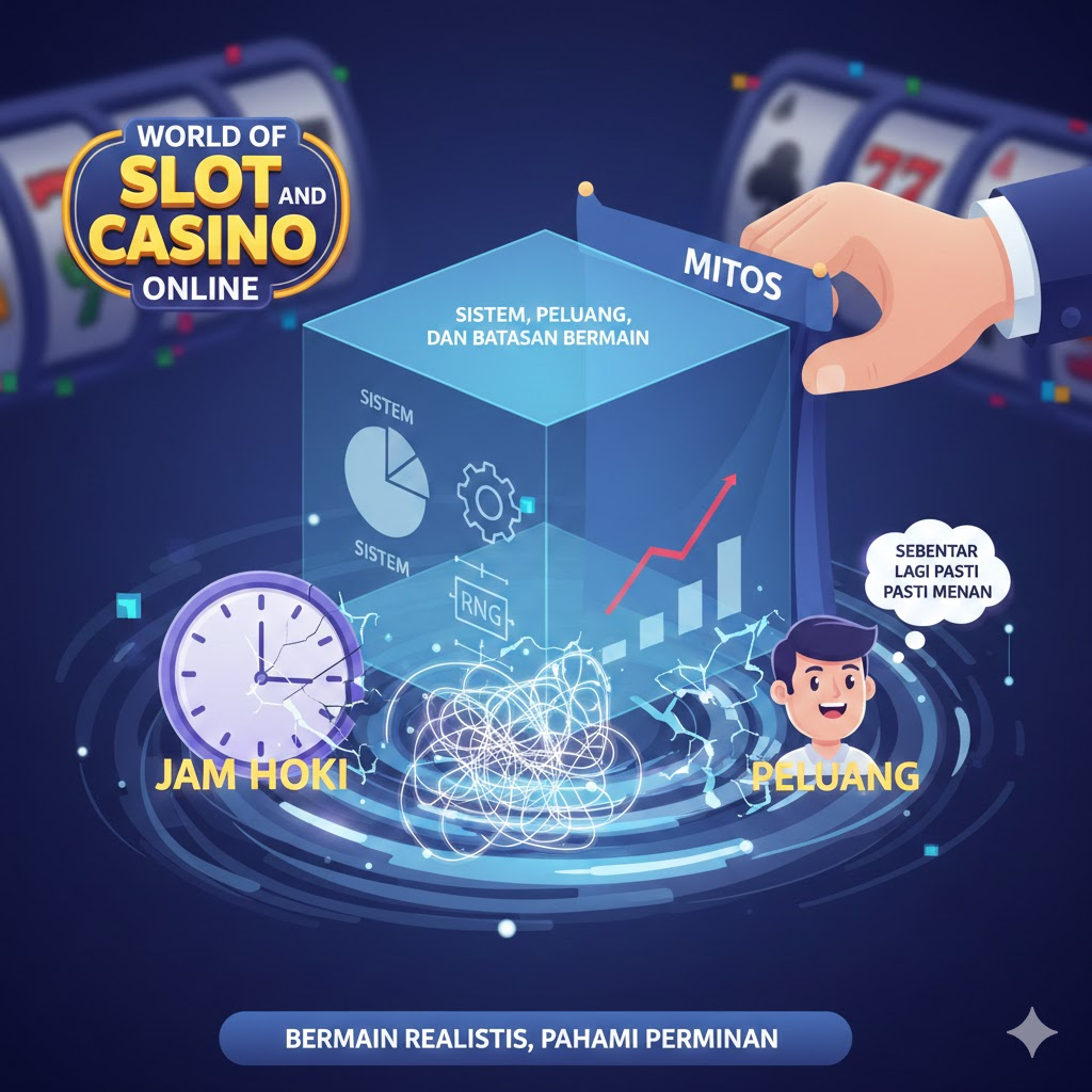 Dunia slot dan casino online dipenuhi cerita, asumsi, dan mitos yang diwariskan dari satu pemain ke pemain lain. Mulai dari jam hoki, pola rahasia, sampai keyakinan bahwa “sebentar lagi pasti menang”. Sayangnya, banyak dari mitos ini justru membuat pemain salah paham terhadap cara kerja permainan.